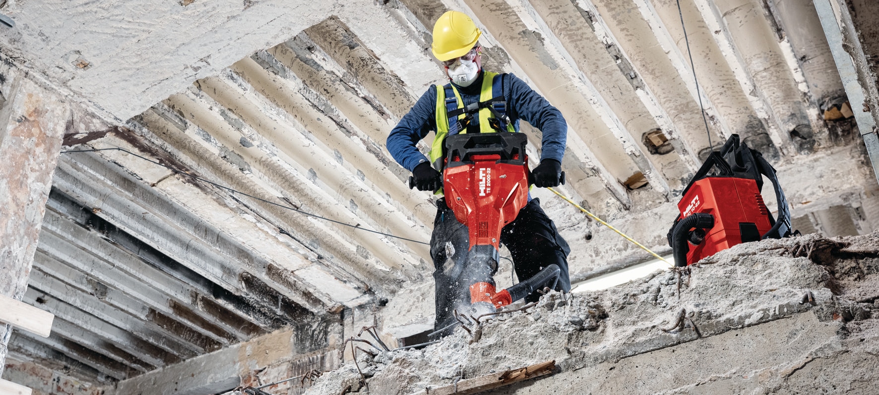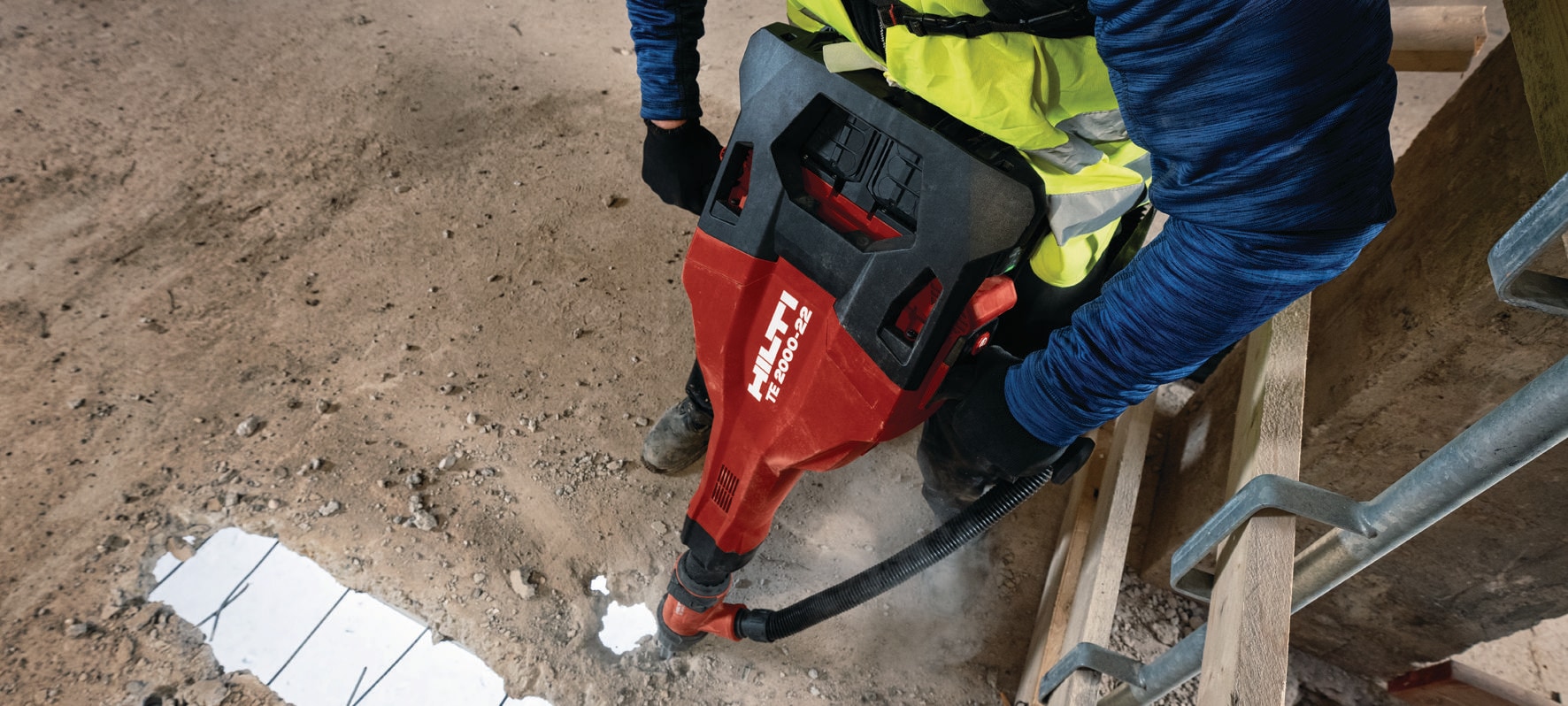 - Phá dỡ hầu như không có bụi – giảm tới 95% bụi silica mịn khi sử dụng với hệ thống loại bỏ bụi TE DRS-B và máy hút bụi Hilti tương thích