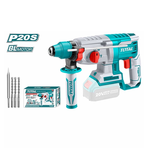 Mô tơ không chổi than. Điện áp: 20V. Tốc độ không tải: 0-1100rpm. Tốc độ tác động: 0-5000bpm. Lực tác động đơn: 2.0J. Khả năng khoan bê tông tối đa: 26mm. Đèn làm việc tích hợp. Đầu gài SDS. Kèm 3 mũi khoan và 1 mũi đục. Không kèm pin và sạc. Đóng gói bằng hộp màu.