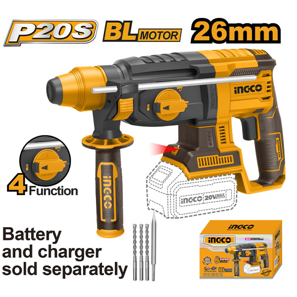 - Khả năng khoan tối đa: Bê tông: 26mm Thép: 13mm Gỗ: 30mm.