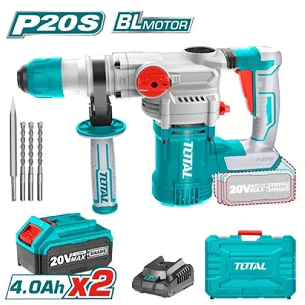 Mô tơ không chổi than, Điện thế: 20V Tốc độ không tải: 0-1000rpm. Tốc tác động: 0-4400bpm Năng lượng tác động: 4.5J. Khả năng khoan bê tông tối đa: 28mm Đèn LED làm việc tích hợp. Hệ thống đầu gài SDS. Kèm 3 mũi khoan, 1 mũi đục. Kèm 2 pin 4Ah (TFBLI2002), 1 Sạc . Điện áp sạc: 220-240V ~50/60Hz. Đóng gói trong hộp nhựa