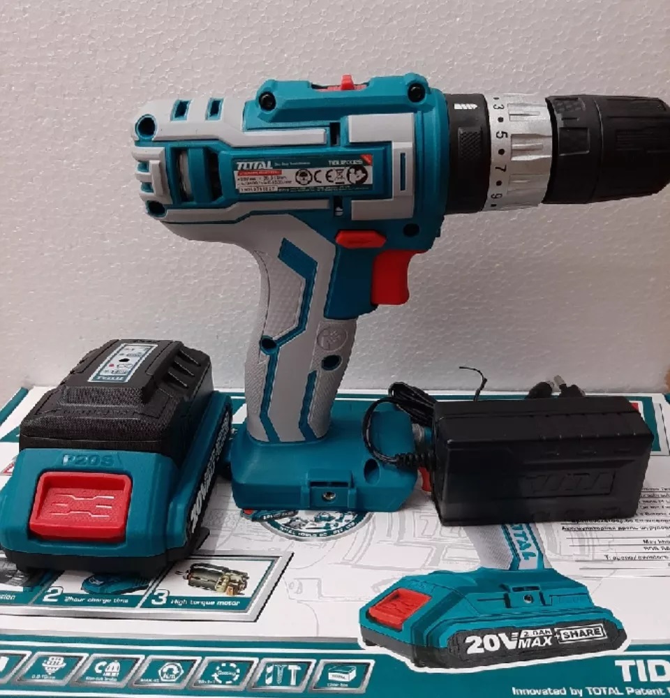 Điện thế: 20V. Hai tốc độ :0-400/0-1500/min. Lực mô men quay tối đa :45NM. Khả năng khoan tối đa:0.8- 10mm, đầu khoan khóa tự động, nhông cơ khí 2 tốc độ, có chức năng khóa trục chính, Điều chỉnh xoắn:15+1, Kèm theo 2 pin 2Ah, 1 sạc. Điện thế sạc: 220V-240V~50/60Hz, Kèm đèn LED, kèm theo 47 món linh kiện, pin có đèn LED hiển thị dung lượng của pin.