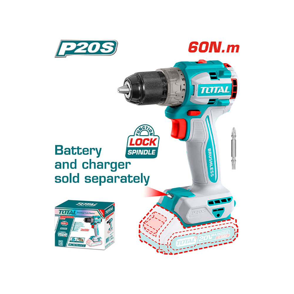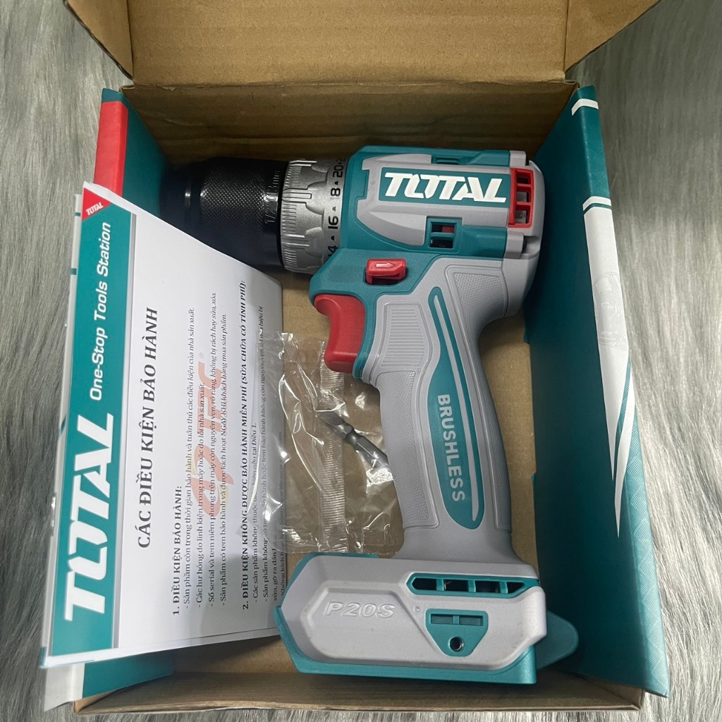 Mô tơ không chổi than. Điện áp: 20V Tốc độ không tải: 0-550/0-2000rpm Mô-men xoắn cực đại: 60Nm. Đầu khoan kim loại Khả năng khoan: 13mm. Thiết lập mô-men xoắn: 22 + 1 Đầu khoan khóa tự động. Hộp số cơ 2 tốc độ Chức năng khóa trục chính Đèn LED làm việc. Không kèm Pin & sạc Kèm 1 mũi khoan Cr-V 65mm. Đóng gói hộp màu