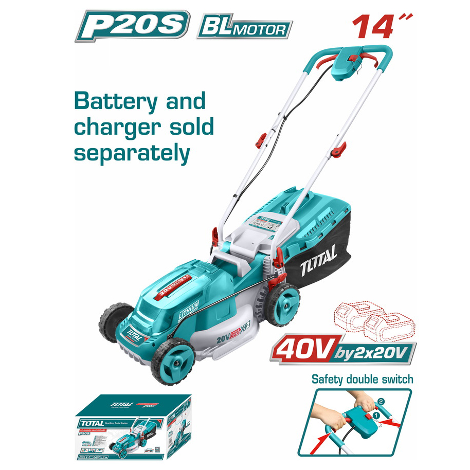 Điện thế: 40V(20V+20V) Tốc độ không tải: 4200/phút Đường kính cắt tối đa: 340mm Dung tích túi chứa cỏ: 30L Phạm vi chiều cao cắt: 25-75mm Vị trí mũi cắt: 6 bánh răng không kèm pin, sạc. Đóng gói trong hộp màu