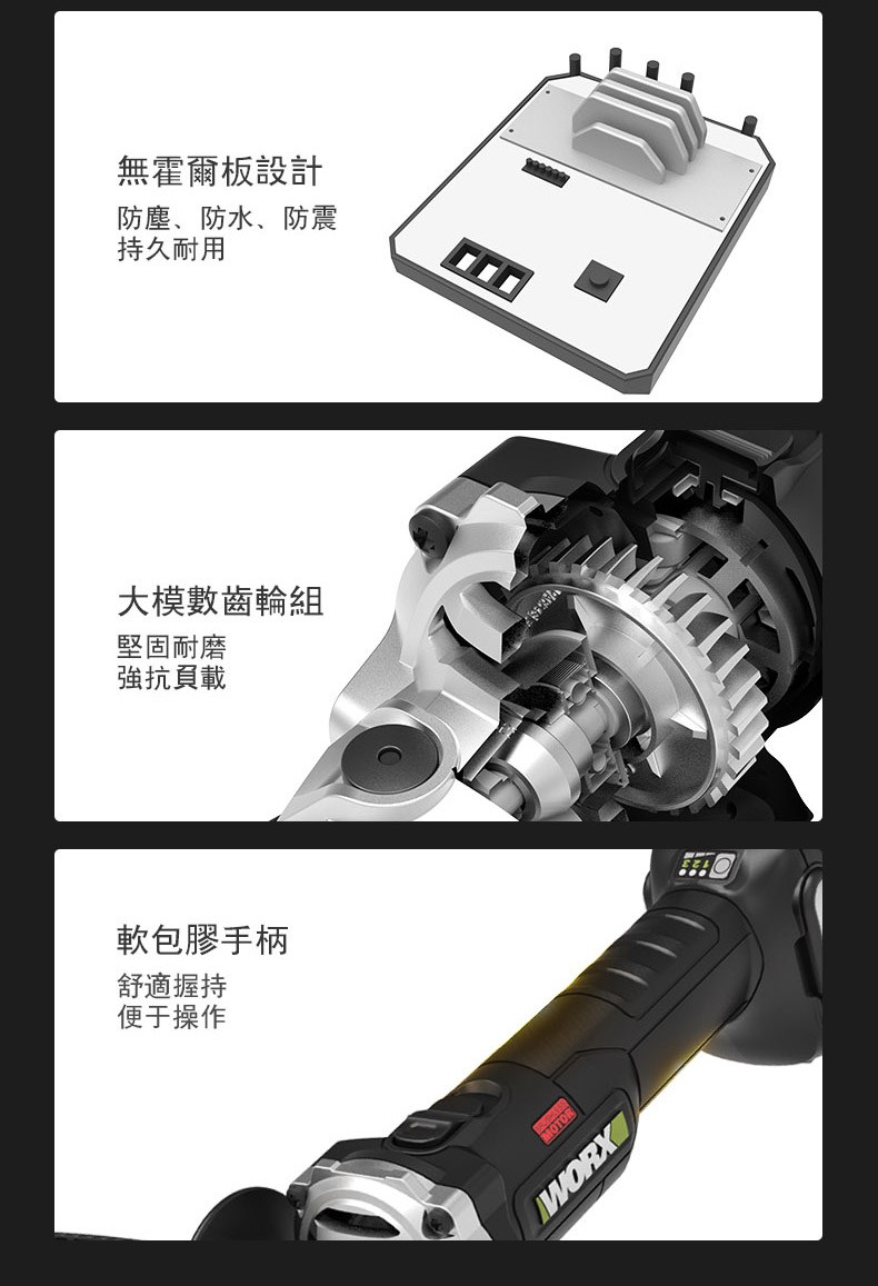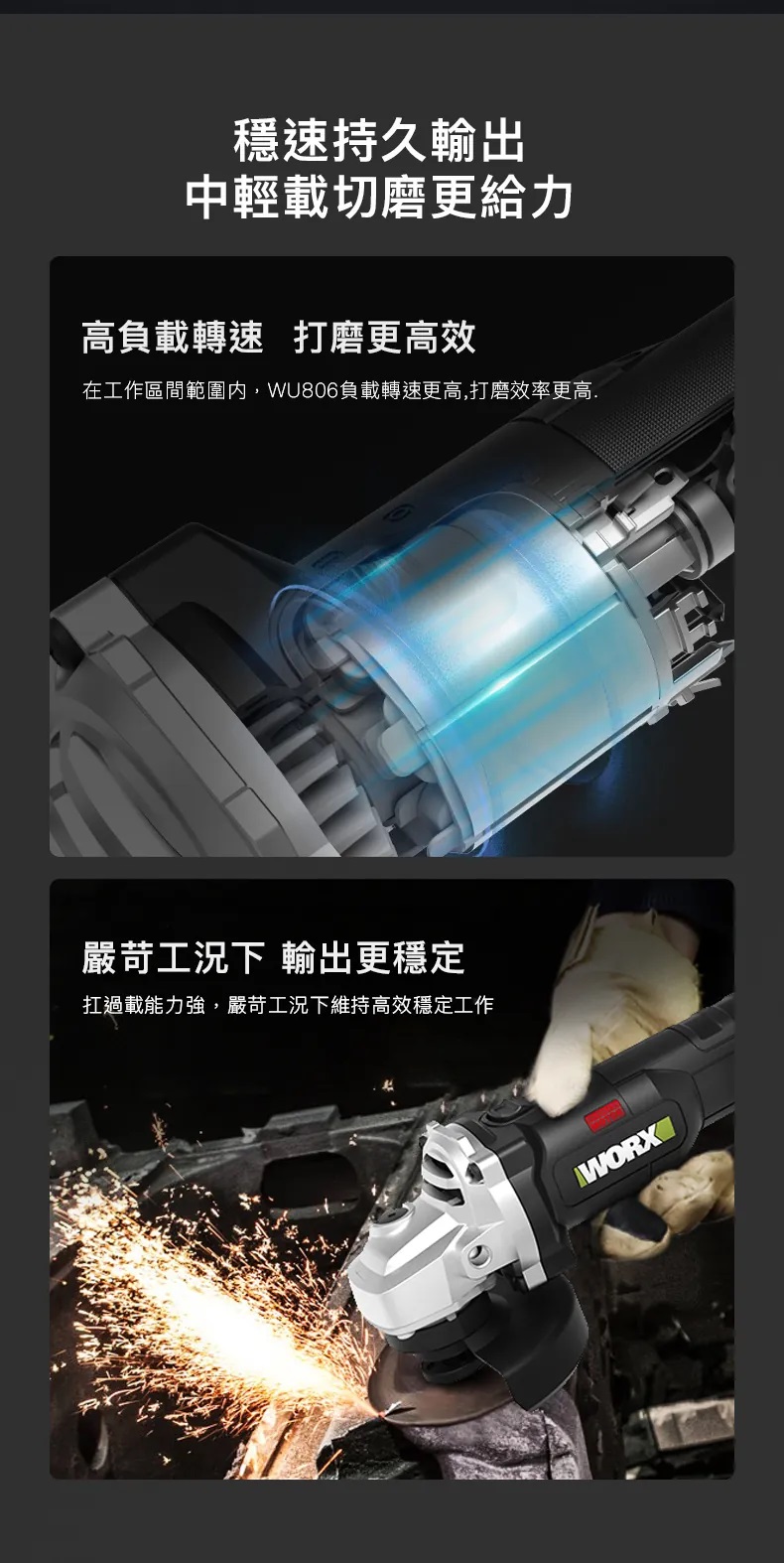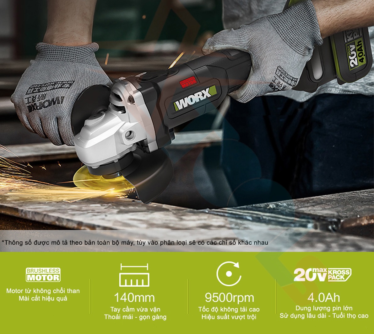 _Động cơ mạnh mẽ 20V giúp thực hiện các công việc mài và cắt một cách dễ dàng.