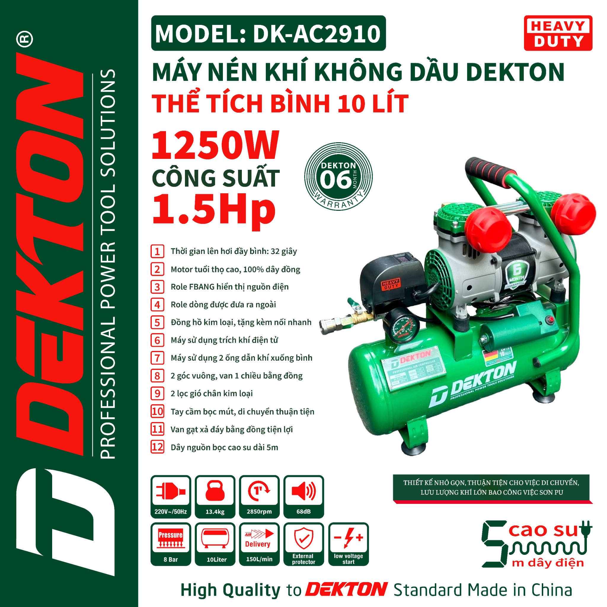 - Khả năng ứng dụng đa dạng: Phù hợp cho nhiều công việc như bơm xe, phun sơn, làm sạch và các ứng dụng công nghiệp nhẹ khác.