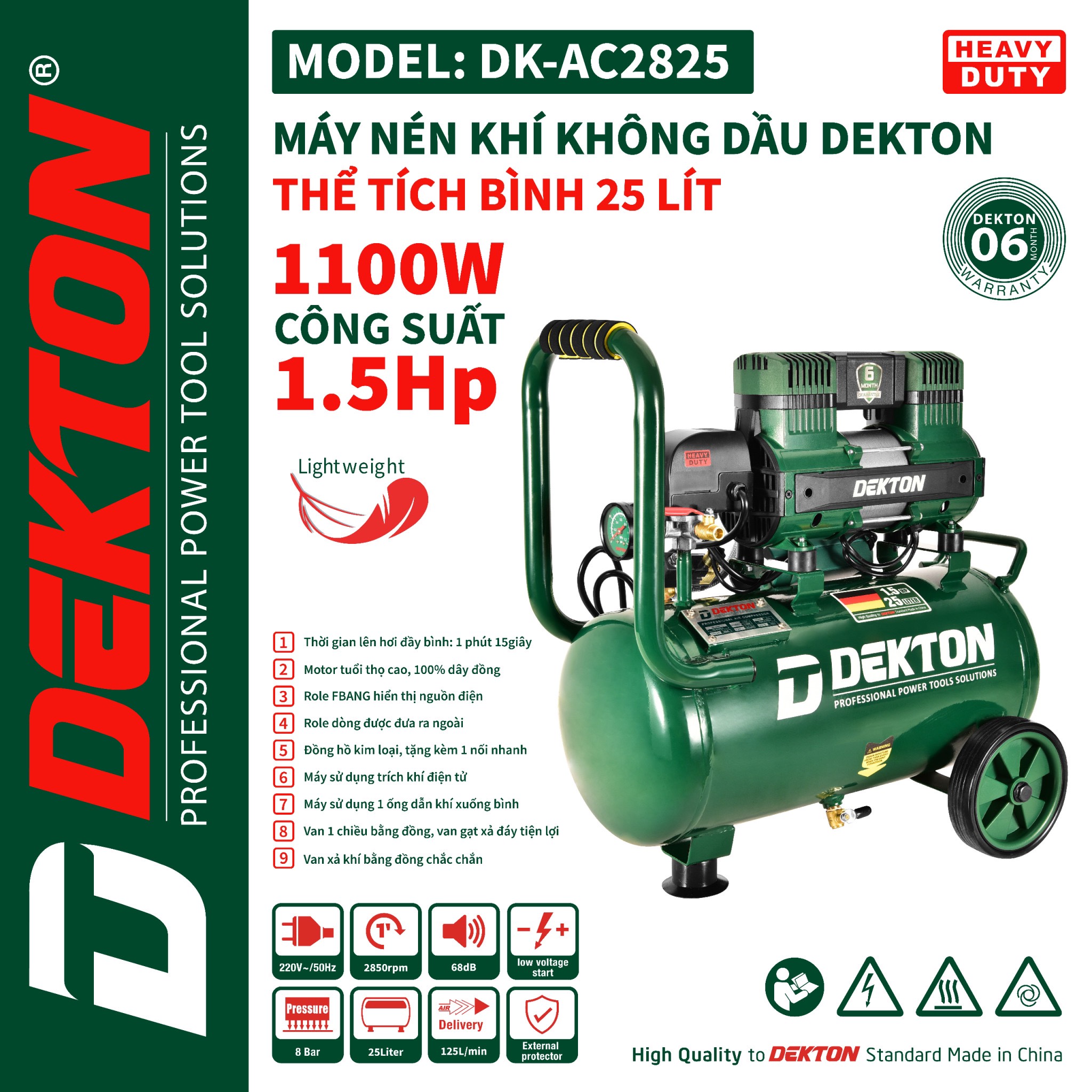 - Bình chứa 25L: Dung tích bình chứa 25L giúp lưu trữ khí nén đủ cho các công việc như bơm hơi, phun sơn, và các ứng dụng công nghiệp nhẹ.