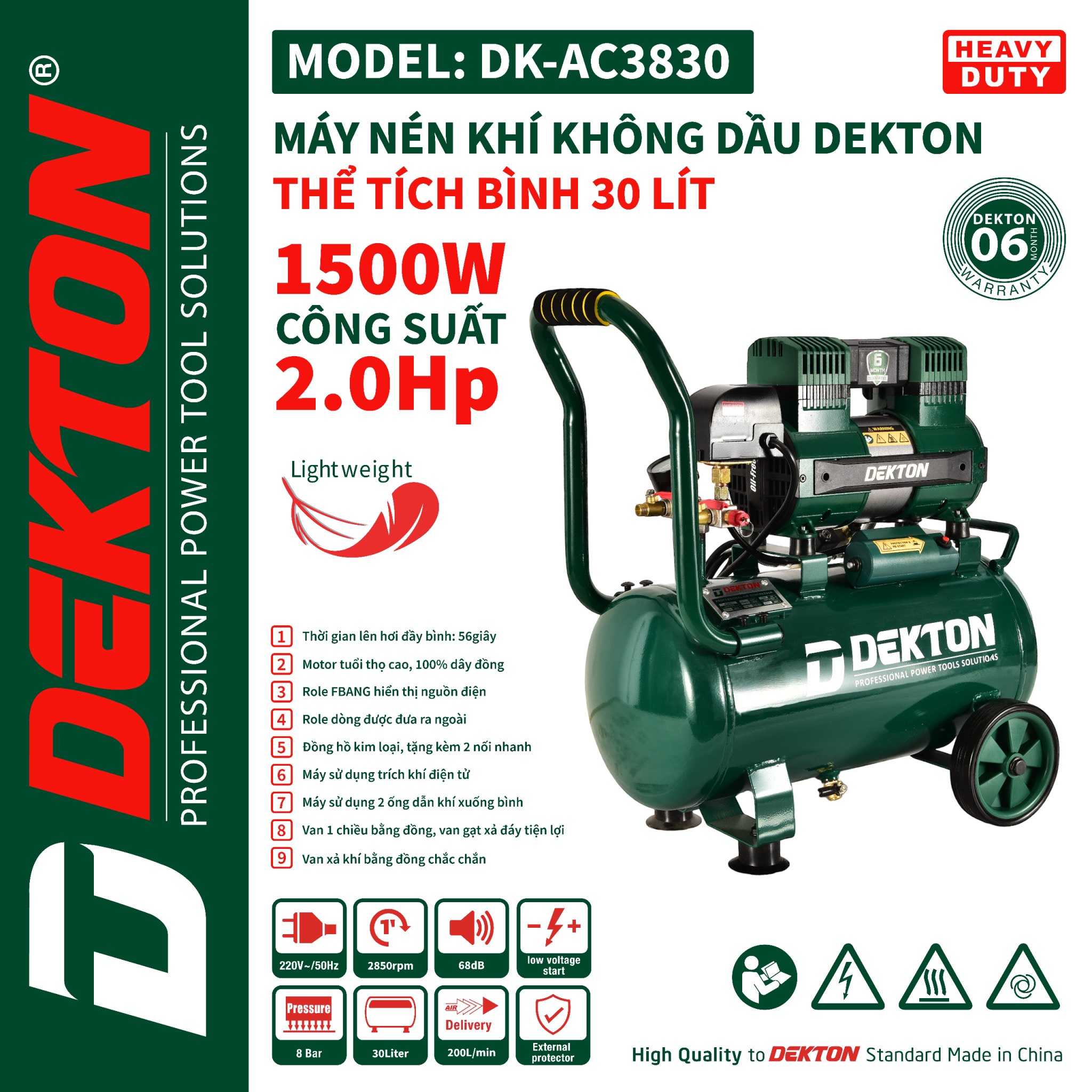 | Thời gian nén khí | cứ 57 giây là nạp đủ 30 L hơi |
