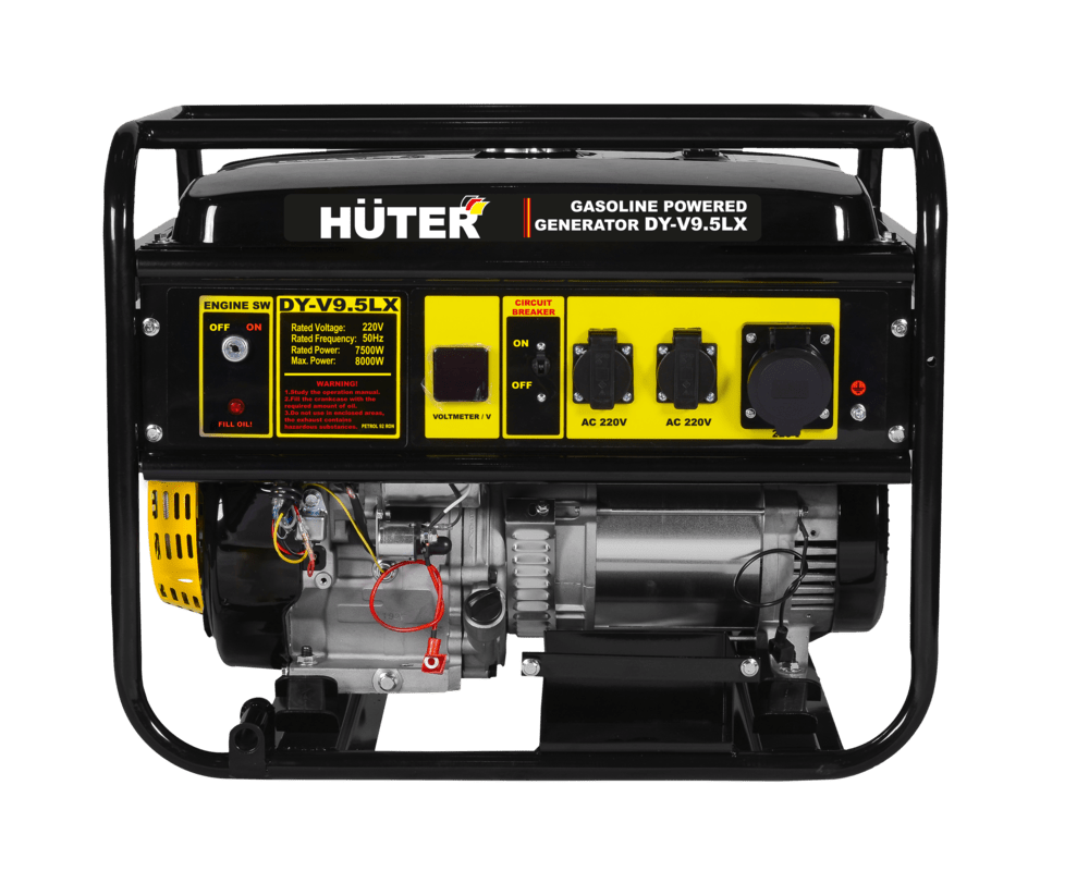 - Máy phát điện HUTER DY-V9.5LX sử dụng động cơ 4 thì dùng nhiên liệu xăng, khí thải thấp.