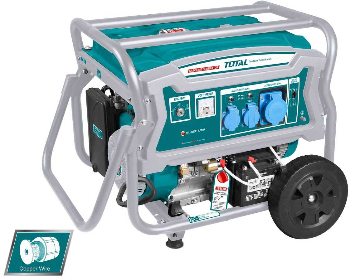 Điện thế: 220-240V. Tần số : 50Hz..Công suất tối đa : 7,5 KW Công suất định mức (kW): 6.0. Tốc độ định mức (vòng / phút): 3000. Động cơ: 4 thì, OHV. Dung tích (ml): 420. Hệ thống Làm mát bằng không khí. Hệ thống đánh lửa: T.C.I. Hệ thống khởi động: giật + đề điện. Máy phát điện dây đồng. Thùng nhiên liệu (L): 25.TL : 88 Kg. Kèm 1 bộ tay cầm phụ và bánh xe.