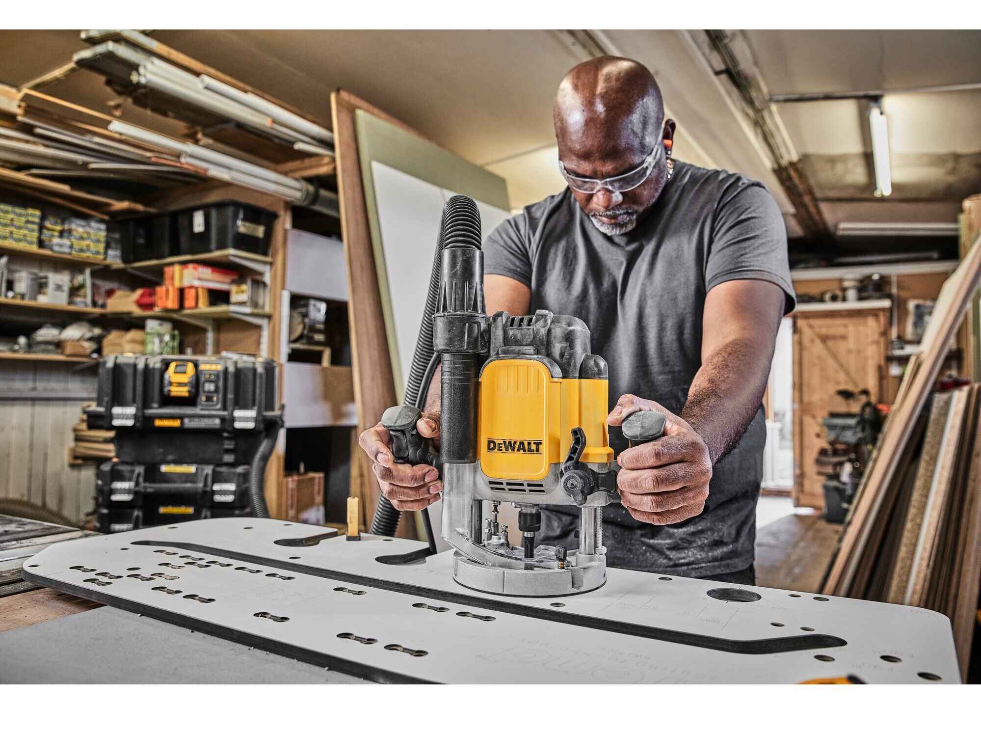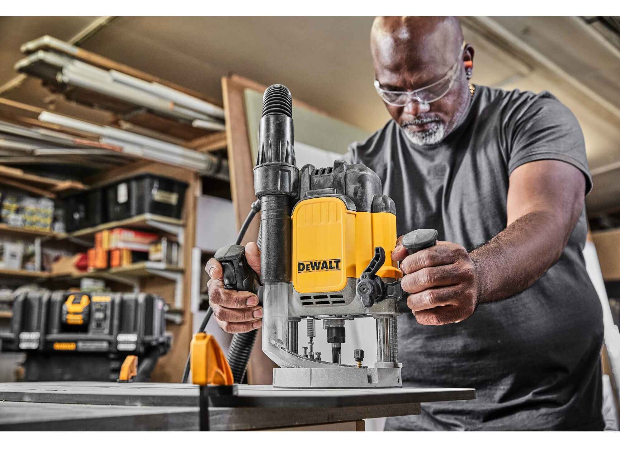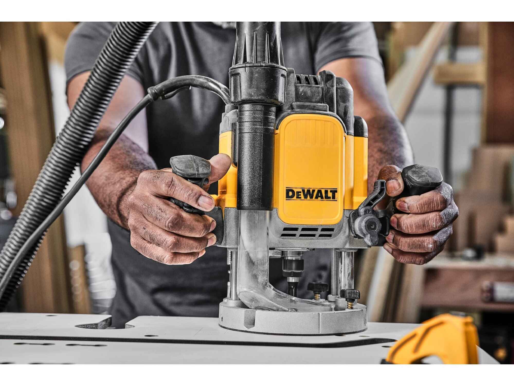 Máy phay dùng điện Dewalt DWE625KT-QS cung cấp công suất 2300 watt để xử lý các vật liệu và ứng dụng cứng nhất như cắt mặt bàn và đục lỗ, đồng thời lý tưởng cho việc sử dụng tại chỗ và xưởng.