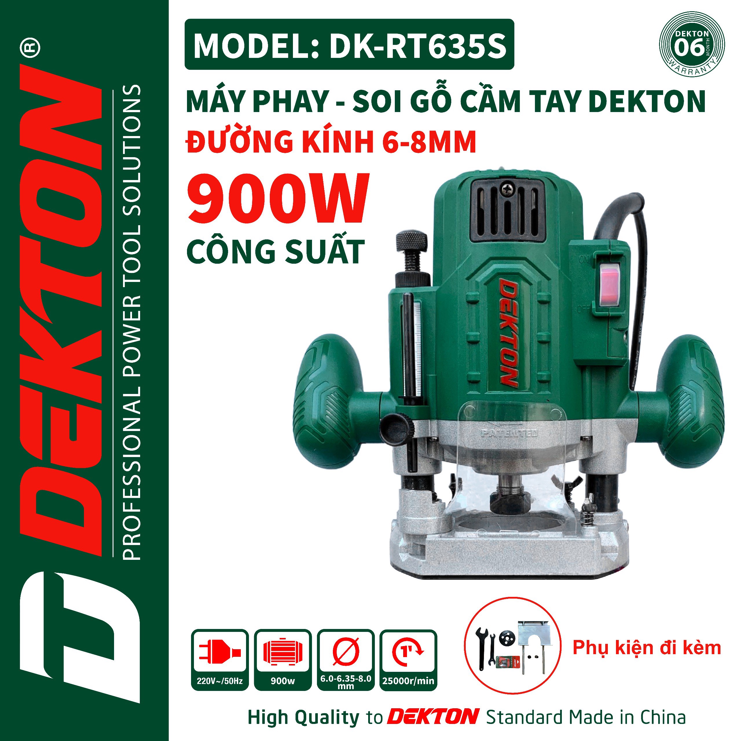 - Máy Soi Gỗ Dekton DK-RT635S 900W là dòng máy soi vỏ nhôm thường được sử dụng để đánh cạnh, soi rãnh, hoàn thiện bề mặt sản phẩm và tạo độ cong khi cắt.