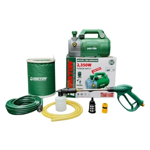 - Máy rửa xe Dekton có khả năng tự hút nước từ xô chậu mà không cần áp lực từ trên cao, lực hút khỏe giúp thuận tiện cho việc sử dụng