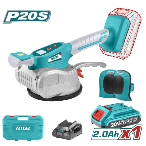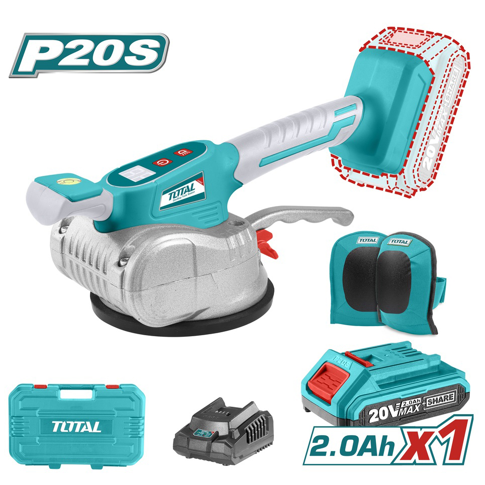 Điện thế: 20V, Tần số rung: 0-10000rpm Lực thấm hút: 50kg. Đường kính cốc hút: 125mm Điều chỉnh tốc độ: 12 tốc độ. Điện áp sạc: 220-240V~50/60Hz Kèm 1 pin 2.0Ah & 1 sạc. Kèm đôi đệm đầu gối Đóng gói trong hộp nhựa