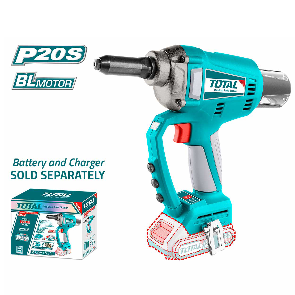 Mô tơ không chổi than Điện áp: 20V, Lực kéo: 20kN Thiết lập hành trình 25 mm cho 1 lần di chuyển Đèn làm việc tích hợp Không kèm pin & sạc Đóng gói bằng hộp màu
