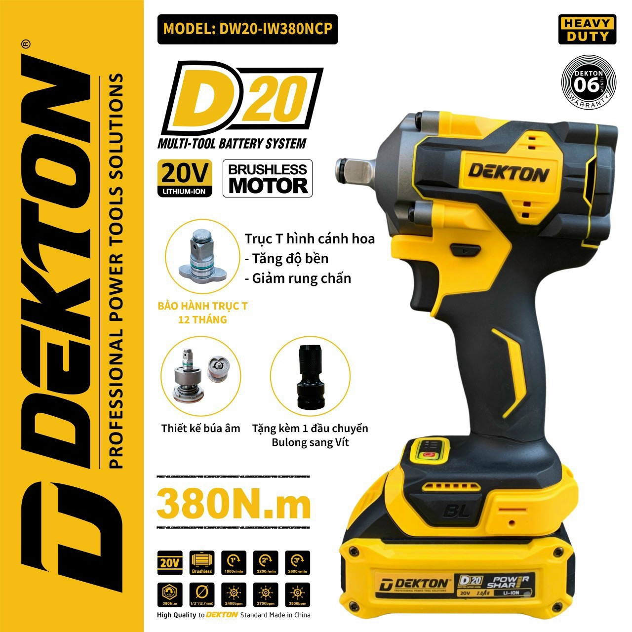 Máy siết bulong pin 20V Dekton D20-IW380NCP là một sản phẩm công nghiệp đa năng, phục vụ một loạt các tác vụ cần lực siết mạnh mẽ. Với nhiều tính năng vượt trội và chất lượng đáng tin cậy, máy này sẽ là một trợ thủ đắc lực trong các dự án xây dựng và sửa chữa.