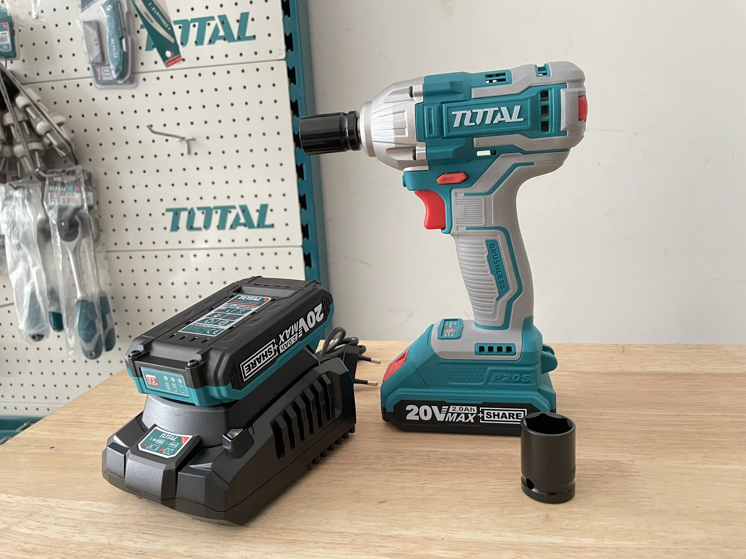 Mô tơ không chổi than.Điện thế: 20V, Đầu vuông: 1/2 ". Tốc độ không tải: 0-1300 / 0-2100 / rpm. Tốc độ tác động: 0-2000 / 0-3300 / phút. Mô-men xoắn cực đại: 300NM. Kèm 2pin 20V/2Ah, 1 sạc. Điện thế sạc: 220V-240V ~ 50 / 60Hz. Đèn làm việc tích hợp, Đèn LED báo nguồn pin. Kèm 2 đầu tuýp: 19, 21mm