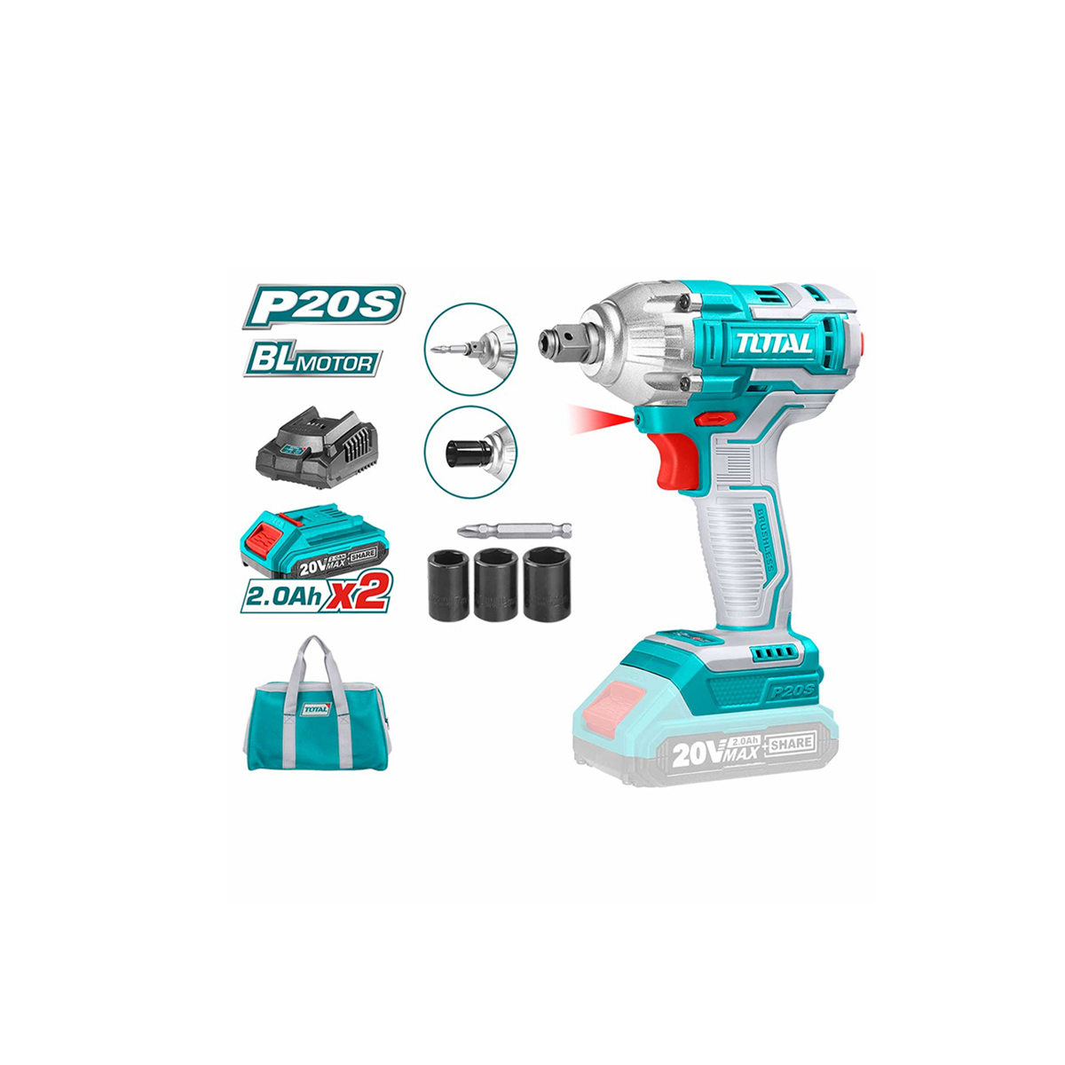 Mô tơ không chổi than; Điện thế: 20V. Đầu siết vuông: 1/2".Tốc độ không tải: 0-1300/0-2300rpm. Tốc độ tác động:0-2000/0-3300bpm. Mô-men xoắn tối đa: 220NM Kèm 2 pin 2.0Ah (TFBLI20011), 1 sạc (TFCLI2001) Điện áp sạc: 220-240V~50/60Hz. Đèn làm việc tích hợp. Đèn LED báo nguồn pin. Kèm 3 đầu tuýp (17 19 21mm) và 1 mũi vít
