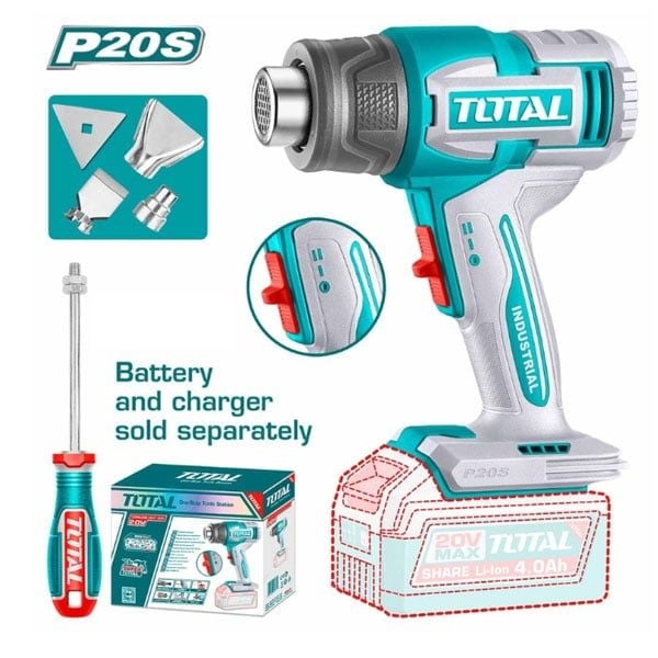 Điện áp: 20V. Nhiệt độ: 300/ 550°C. Lưu lượng khí: 100/ 200 Lít/ Phút. Kèm theo: 3 đầu thổi, 1 Dụng cụ cạo. Pin và sạc được bán riêng. Đóng gói trong hộp màu.