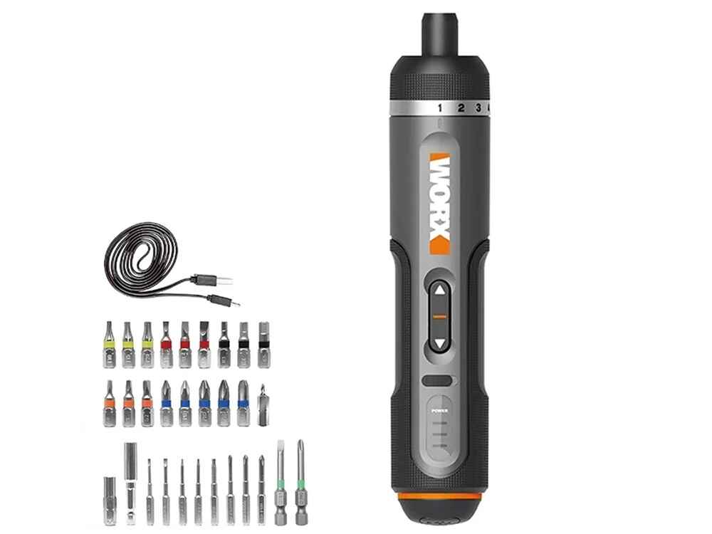 _Bộ phụ kiện kèm theo: 29 Mũi Vít, Dây Sạc, Đầu Nối Dài, Hộp Nhựa.