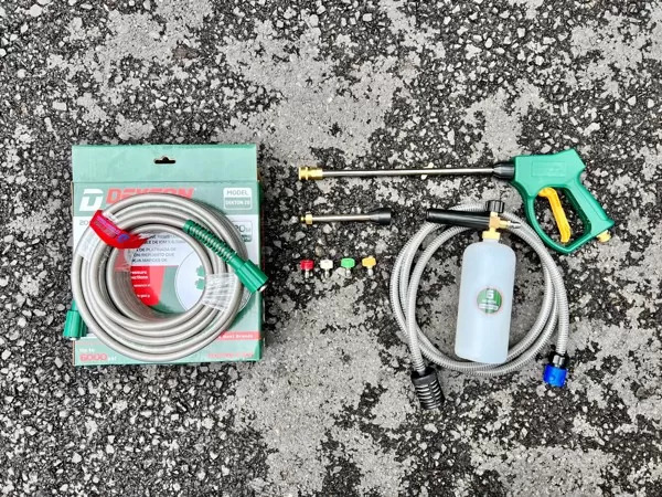 - Máy phun xịt cao áp DK-HPW2350 2350W hoạt động với công suất lớn, áp lực mạnh 130 bar giúp làm sạch mọi bùn đất, dầu mỡ cứng đầu trên xe hoặc trên nền sân 1 cách dễ dàng. Bạn có thể điều chỉnh áp suất mạnh, nhẹ phù hợp với vị trí công việc.