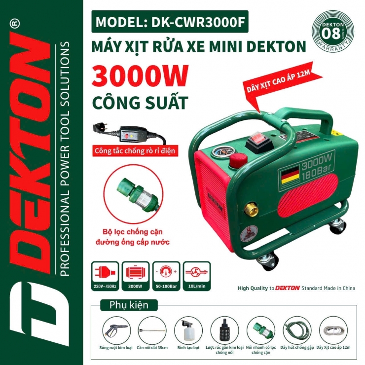 - Hiệu Quả Làm Sạch Cao: Với áp lực nước lên đến 180 bar, mọi vết bẩn cứng đầu sẽ bị đánh bay một cách dễ dàng.