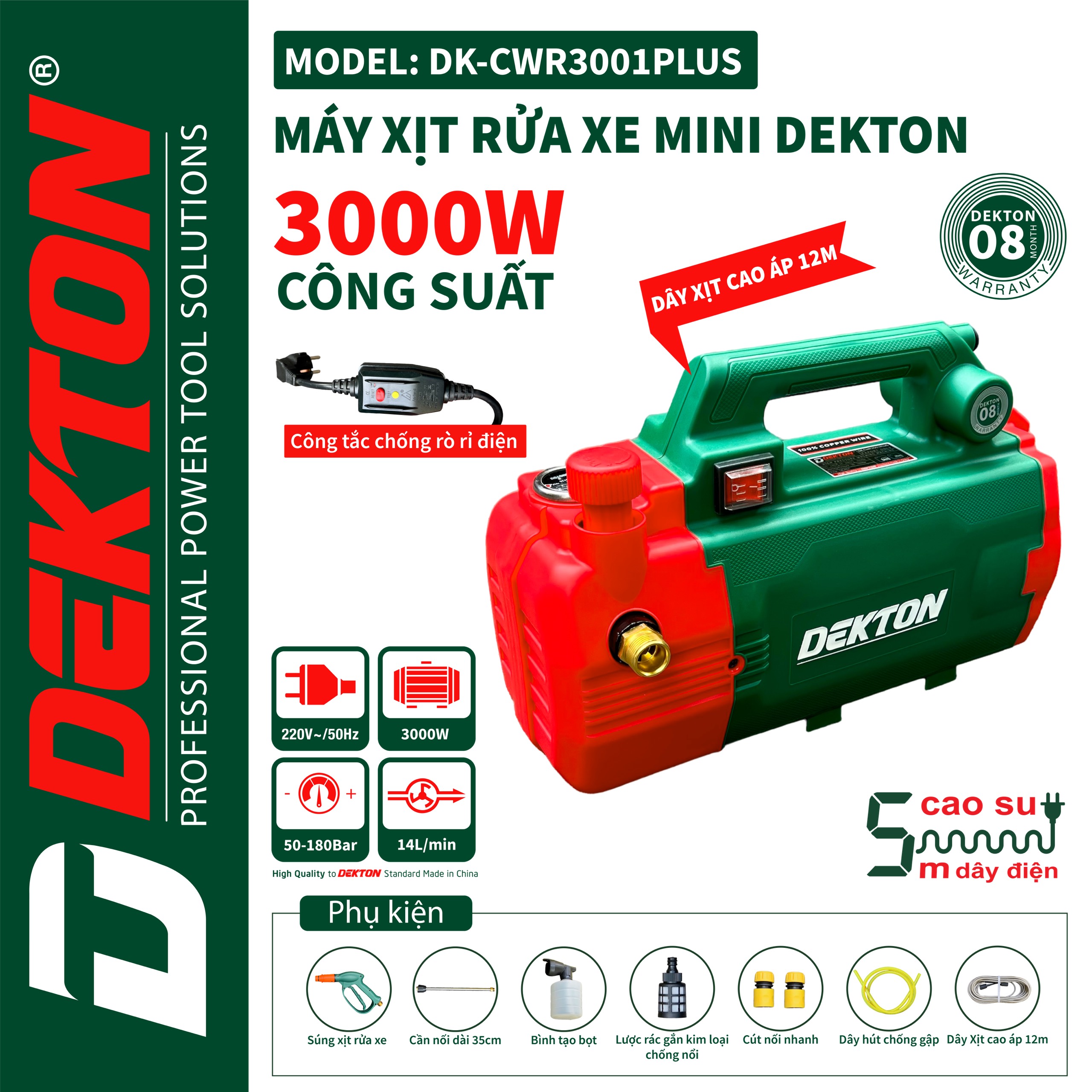 - Máy rửa xe Dekton DK 3001 PLUS có khả năng tự hút nước từ xô chậu mà không cần áp lực từ trên cao, lực hút khỏe giúp thuận tiện hơn trong quá trình sử dụng.