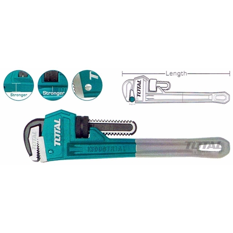 Size: 12 inch (300mm), Đường kính kẹp tối đa: 42 mm, Chất liệu: Được làm bằng thép carbon - Quai hàm tôi luyện chắc rắn khỏe,khó gãy, cong, có độ bền cao. Chất liệu của cán (tay cầm): bằng gang dẻo - 18/T