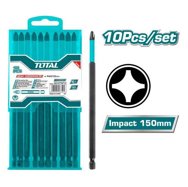 Mũi bắt vít PH2x150mm. 10 cái / bộ. Đầu vít được tối ưu hóa lớn hơn giúp giảm gãy đầu, chất liệu bằng thép công nghiệp S2. Bề mặt đen có nam châm. Đóng gói bằng hộp nhựa.