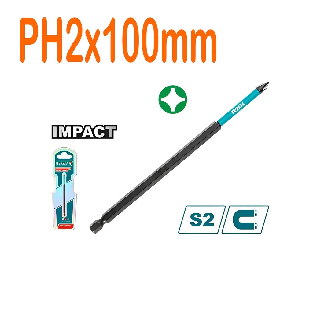 Mũi bắt vít PH2x100mm Thép công nghiệp S2 Bề mặt màu đen có nam châm Đóng gói bằng vỉ đôi