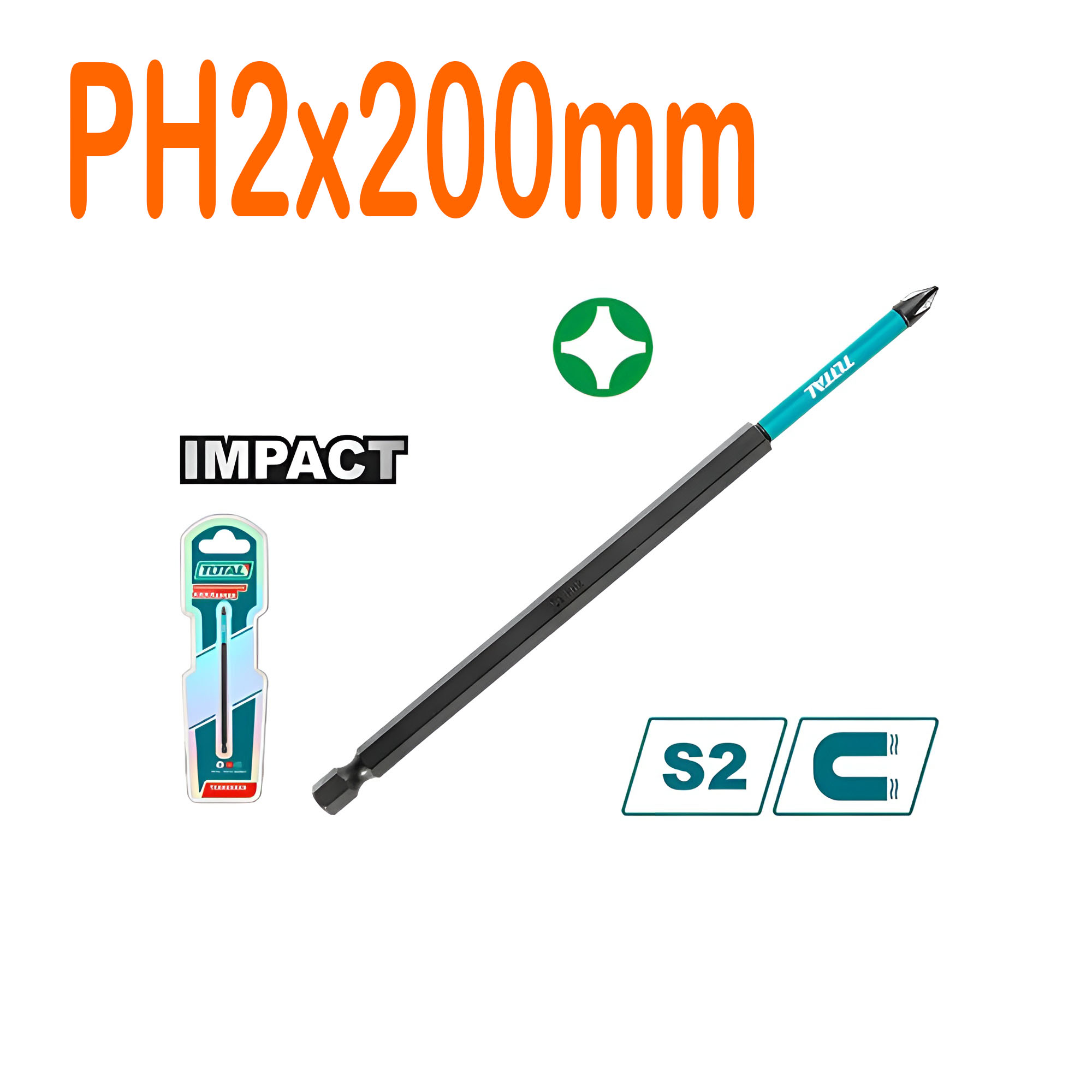 Mũi bắt vít PH2x200mm Thép công nghiệp S2 Bề mặt màu đen có nam châm Đóng gói bằng vỉ đôi