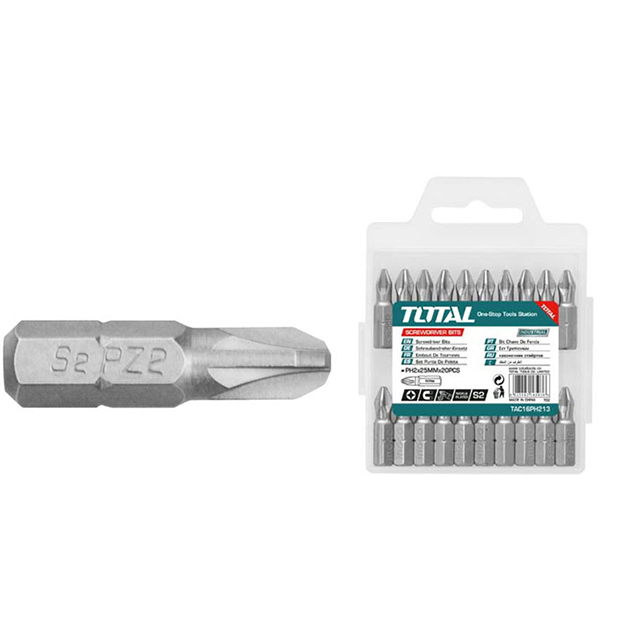 Size: PZ2, 25mm; 20 cái/ bộ, chất liệu bằng thép công nghiệp S2, mạ niken từ tính