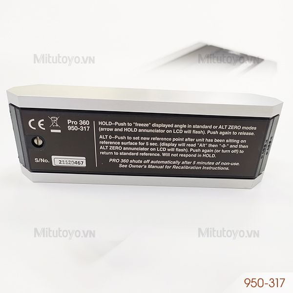 - Nivo đo độ nghiêng điện tử Mitutoyo 950-317 có thể đo tất cả các góc trong phạm vi rộng từ 0 đến 360 độ. Cùng với độ chia nhỏ, chỉ ±0.1° kết hợp với mức độ sai số chỉ ±0.1° trong khoảng ±10°, lớn nhất ±0.2° được sử dụng để đo giá trị góc nghiệng, đo độ phẳng, độ thẳng, cân bằng thiết bị