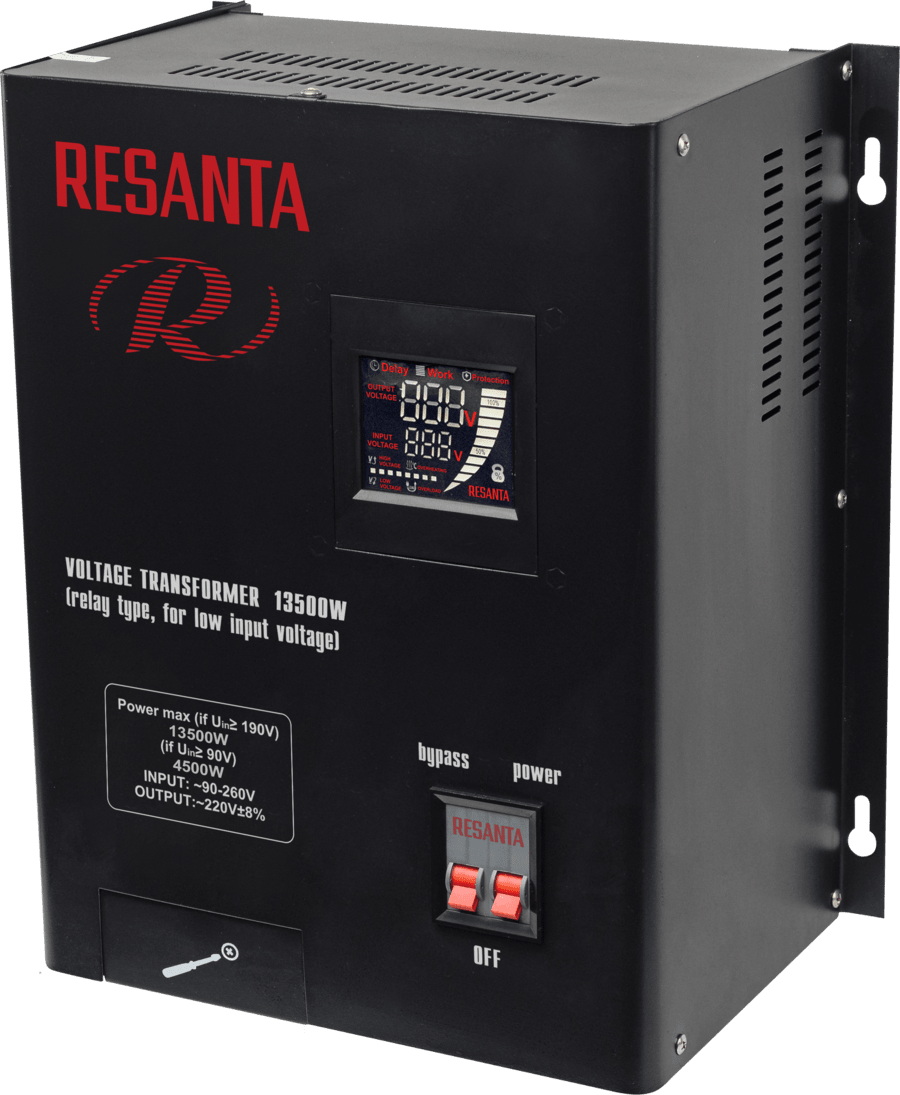 Màn hình LCD tinh thể lỏng hiển thị tất cả các thông số bảo vệ tải của ổn áp, bao gồm điện áp đầu vào/đầu ra, chế độ bảo vệ đang kích hoạt, hiển thị giá trị tải của ổn áp, ngoài ra còn hiển thị bộ đếm ngược thời gian trễ.