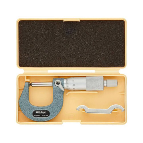 - Panme đo ngoài cơ khí với dải đo 0-25mm, độ chia là 0.01mm. Thước Panme là dụng cụ đo lường hữu ích cho việc phải thực hiện chính xác cao.