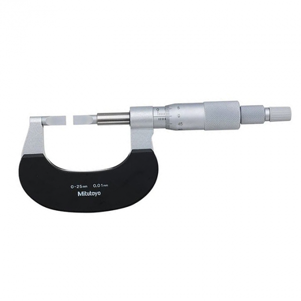 - Đầu đo cố định (anvil) và đầu đo di động (spindle) dạng dẹp, để đo đường kính rãnh của trục, rãnh then, hoặc các vị trí khó tiếp cận.