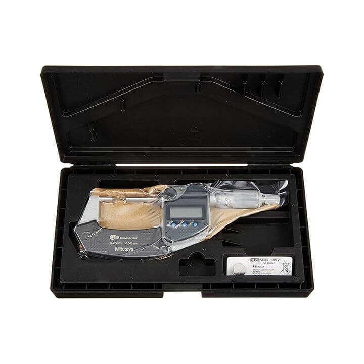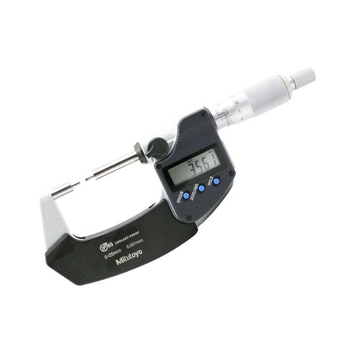 - Panme điện tử Mitutoyo được thiết kế với chiều dài khoảng đo tối đa là 25mm, với các bộ phận vi mạch và linh kiện điện tử đã được trải qua các công đoạn lập trình và gia công tỉ mỉ giúp cho sản phẩm panme đạt được khả năng đo đạc với mức độ chính xác hoàn hảo đến tinh vi, kèm với mức sai số hoàn toàn không đáng kể chỉ vào khoảng trên dưới 2 μm.