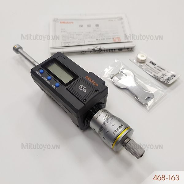- Panme đo lỗ 3 chấu điện tử Mitutoyo 468-163 được thiết kế gọn nhẹ có khoảng đo 10 - 12mm, độ hiển thị 0.001mm, độ chính xác ±2µm với với bề mặt đế được thiết kế bằng thép dụng cụ đo có hệ số giãn nở nhiệt thấp, thông qua 3 chấu dễ dàng xác định đường kính trong với độ chính xác, độ ổn định phép đo cao.