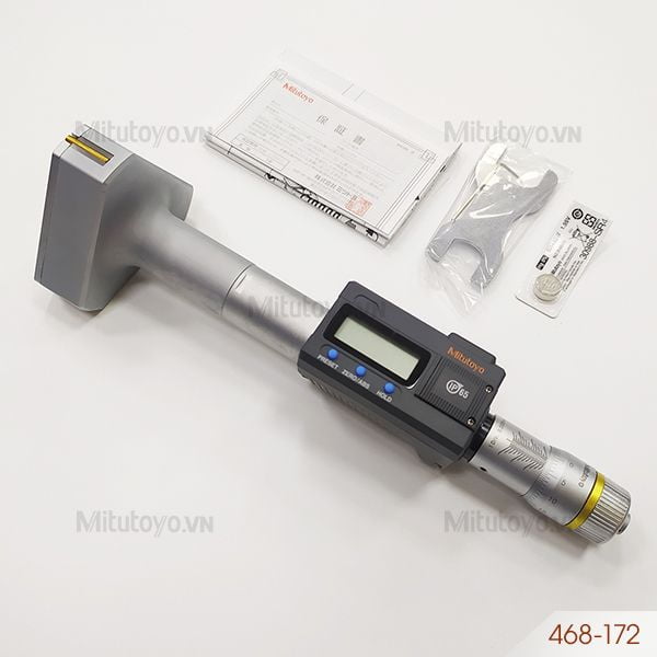 - Panme đo lỗ 3 chấu điện tử Mitutoyo 468-172 được thiết kế gọn nhẹ có khoảng đo 75 - 88mm, độ hiển thị 0.001mm, độ chính xác ±4µm với với bề mặt đế được thiết kế bằng thép dụng cụ đo có hệ số giãn nở nhiệt thấp, thông qua 3 chấu dễ dàng xác định đường kính trong với độ chính xác, độ ổn định phép đo cao.