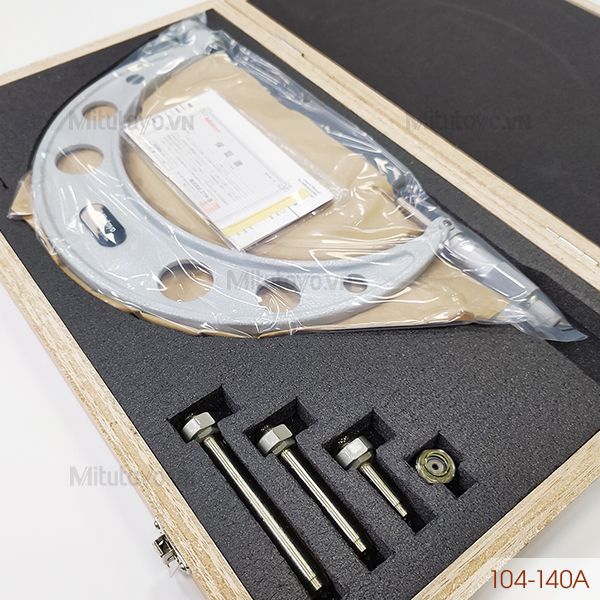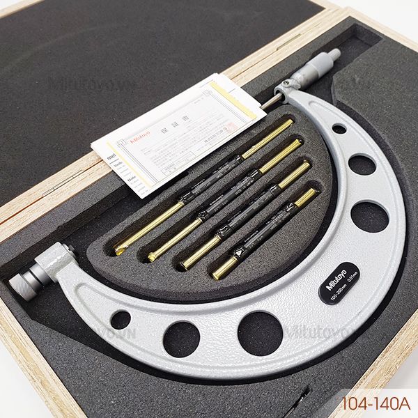 Panme đo ngoài cơ khí Mitutoyo 104-140A được thiết kế có khoảng đo 100 - 200mm, độ chia 0.01mm dùng để đo độ dài, đường kính bên ngoài của các các chi tiết, độ dày vật liệu trong các ngành kỹ thuật như: cơ khí chế tạo máy, khuôn mẫu, ô tô, nội thất với độ chính xác cao. Được sản xuất trên công nghệ hiện đại của Nhật Bản, khung panme được sơn tĩnh điện ở nhiệt độ trên 65°C (150°F) giúp bề mặt sơn sáng bóng, tăng độ bề độ bám lớp sơn.