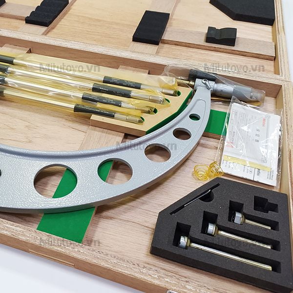 Panme đo ngoài cơ khí Mitutoyo 104-142A được làm vật liệu cứng cáp, không gỉ, chắc chắn, giảm độ chói từ ánh sáng, chịu được va chạm giúp sản phẩm bền lâu, chống mài mòn sau thời gian sử dụng.