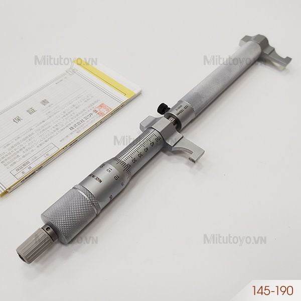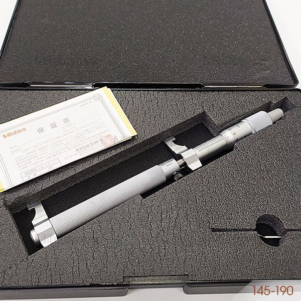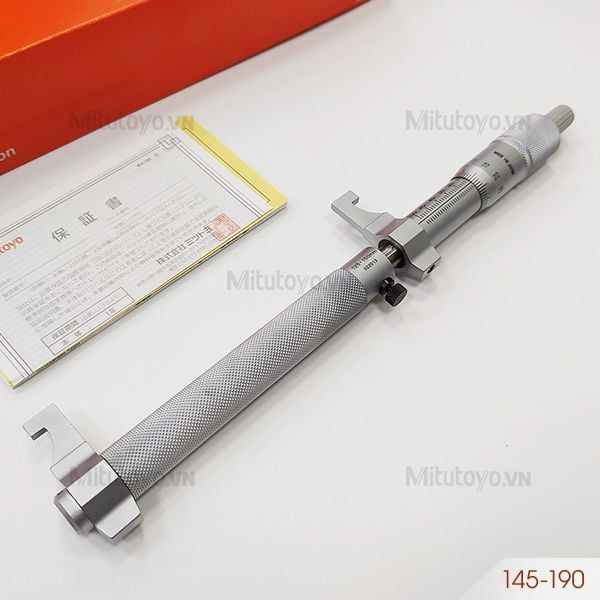 Panme cơ khí đo trong Mitutoyo 145-190 có khoảng đo 125 - 150mm, độ chia 0.01mm, độ chính xác ±9µm, đầu đo được phủ một lớp carbide chống mài mòn. Dùng để đo đường kính trong các loại ống, đo khe hở, rãnh, sử dụng nhiều các ngành kỹ thuật xây dựng, cơ khí chế tạo máy, khuôn mẫu, ô tô, nội thất với độ chính xác cao.