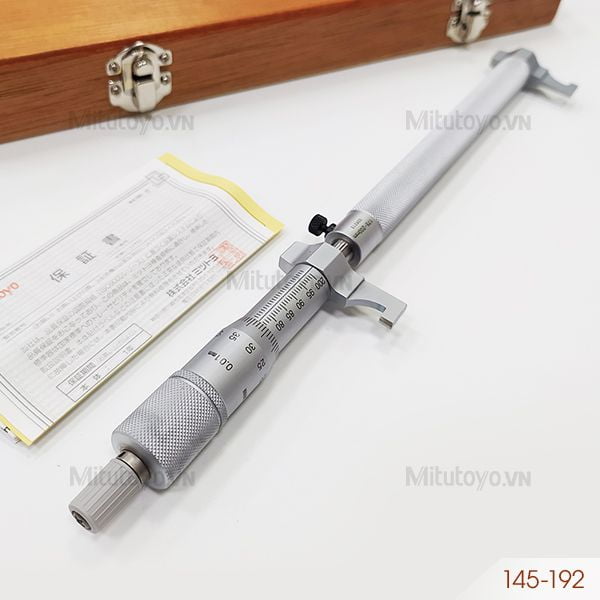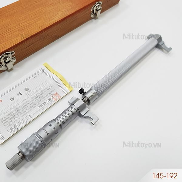 - Panme cơ khí đo trong Mitutoyo 145-192 có khoảng đo 175 - 200mm, độ chia 0.01mm, độ chính xác ±10µm, đầu đo được phủ một lớp carbide chống mài mòn. Dùng để đo đường kính trong các loại ống, đo khe hở, rãnh, sử dụng nhiều các ngành kỹ thuật xây dựng, cơ khí chế tạo máy, khuôn mẫu, ô tô, nội thất với độ chính xác cao.