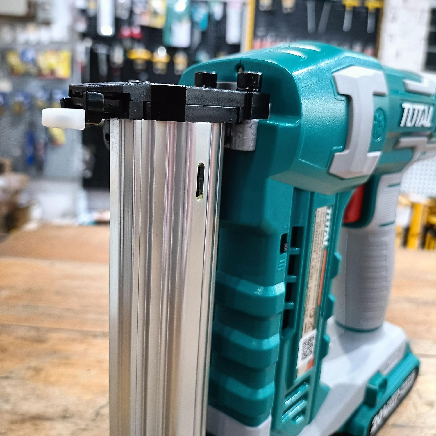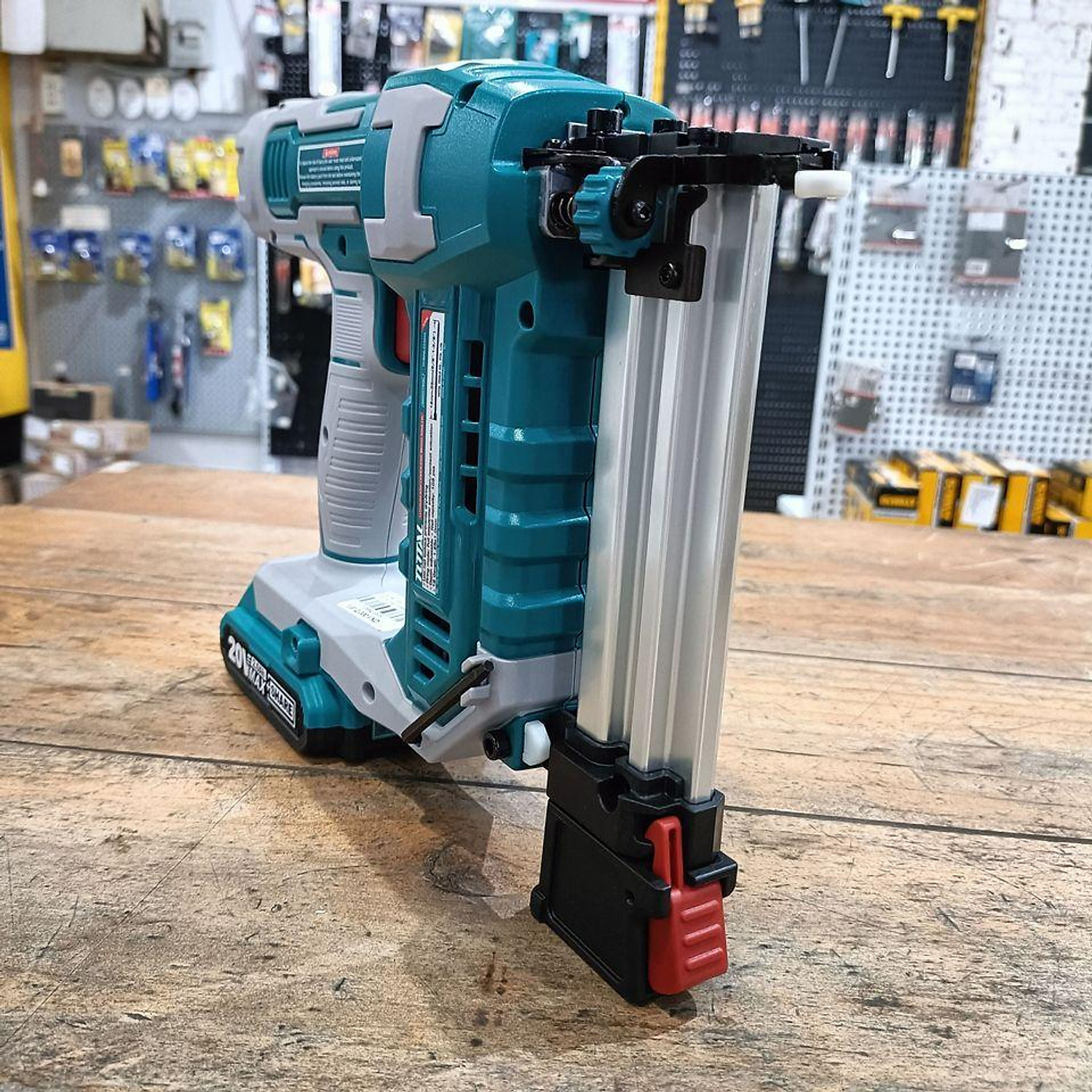 Điện thế: 20V. Loại đinh: F15~F35 Thích hợp cho: :TAC918151, TAC918201, TAC918251, TAC918301. Tốc độ truyền đinh: 3 đinh/s Dung lượng chứa đinh: 105 pcs. Điện áp sạc: 220V-240V~50/60Hz. Kèm 1 pin 2.0AH (TFBLI2001) và 1 sạc (TFCLI2001E ). Đóng gói trong hộp màu