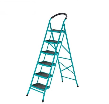 Chất liệu bằng thép, Sáu bậc thang, Kích thước mỗi bậc thang: 380*260mm, kích thước khi mở thang: 1225*510*1705mm, kích thước khi gập thang:505*140*1935mm, độ dày của ống thép: 0.9mm, khả năng tải: 150 kg, Đóng gói thùng carton - 2/T