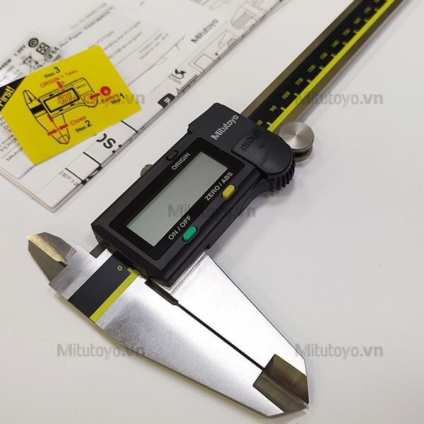 Trên dụng cụ đo có một số nút chức năng người dùng dễ dàng điều khiển: ON/OFF để tắt hoặc bật thiết bị, ZERO/ABS thiết lập lại số liệu và MM/INCH có thể đổi đơn vị.