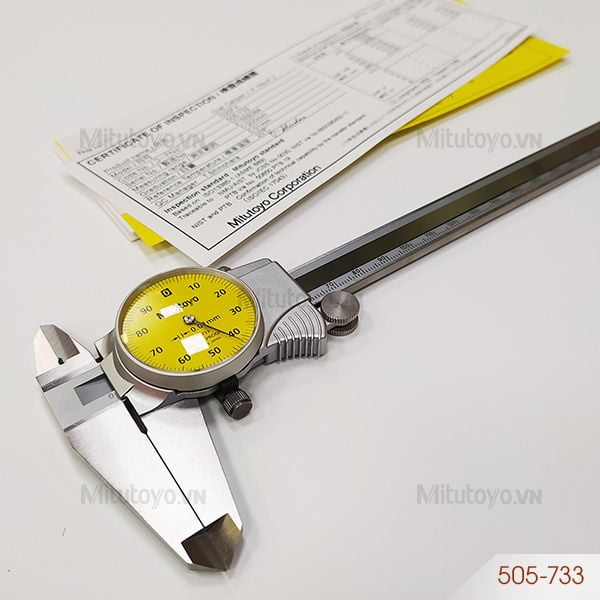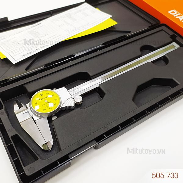 - Thước cặp đồng hồ Mitutoyo 505-733 có độ chính xác cao, phạm vi đo 0 - 200mm đo hệ Metric, độ chia: 0.01mm dễ dàng sử dụng. Độ chính xác: ±0.03mm phù hợp để đo, kiếm tra các chi tiết, độ dày vật liệu trong các ngành kỹ thuật như xây dựng, cơ khí chế tạo máy, khuôn mẫu, ô tô, nội thất.