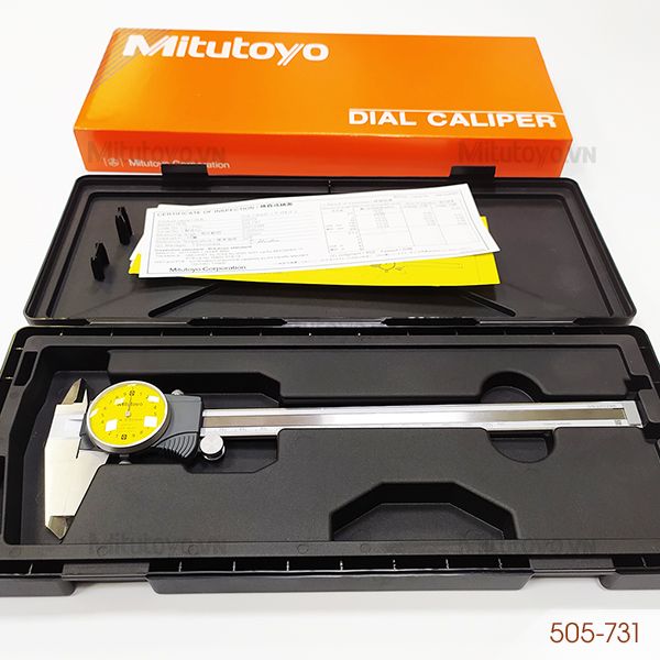 - Thước cặp đồng hồ Mitutoyo 505-731 có độ chính xác cao, phạm vi đo 0 - 200mm đo hệ Metric, độ chia: 0.02mm dễ dàng sử dụng. Độ chính xác: ±0.03mm phù hợp để đo, kiếm tra các chi tiết, độ dày vật liệu trong các ngành kỹ thuật như xây dựng, cơ khí chế tạo máy, khuôn mẫu, ô tô, nội thất.