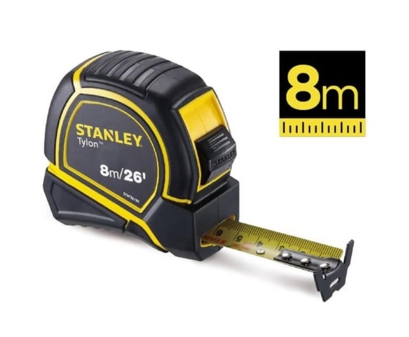 - Đặc biệt, thước cuộn thép Tylon 8M/26-25MM Stanley STHT36195 có độ chính xác cao, sai số chỉ 0.7mm/m. Nếu bạn làm xây dựng, thiết kế nội thất… thì thước Tylon Stanley STHT36195 với chiều dài 6m là một trong những lựa chọn không thể tốt hơn.