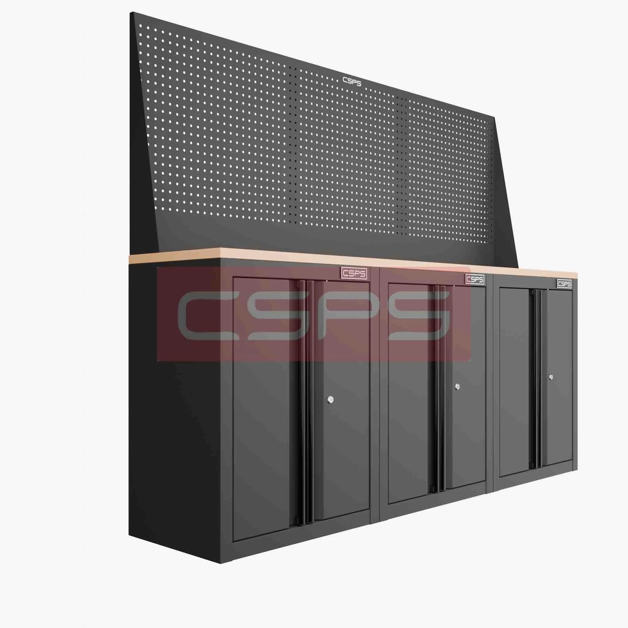 • Kết hợp với vách lưới thuận tiện cho việc treo các thiết bị dụng cụ của garage như kìm búa, mỏ lếch, thước…./ Combined with a pegboard, it is convenient to hang garage equipment such as hammer pliers, wrenches, rulers ...
